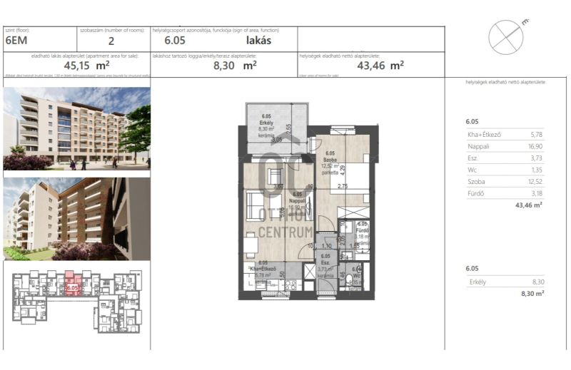 Alapterület: 43 m2