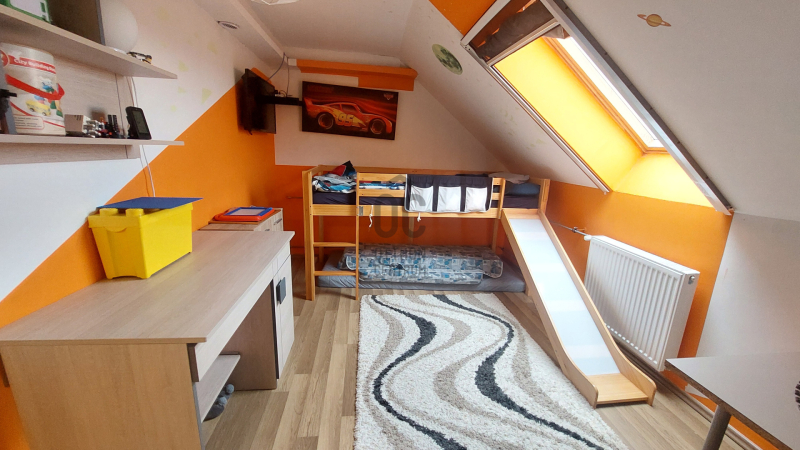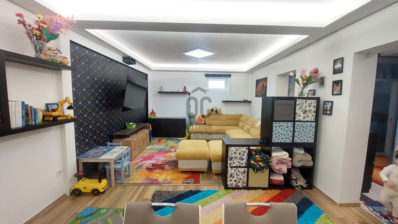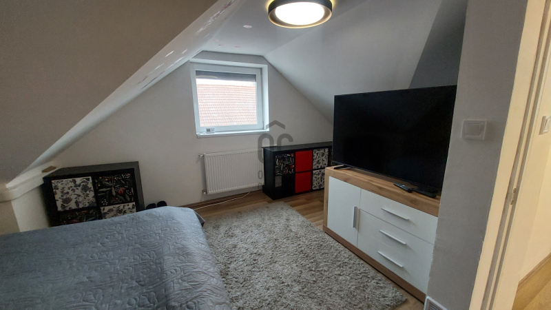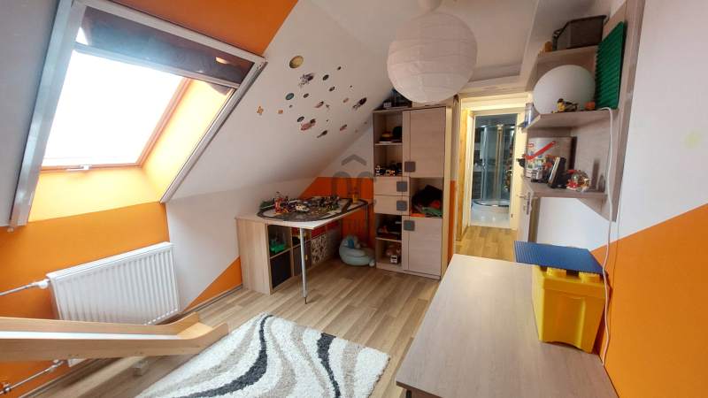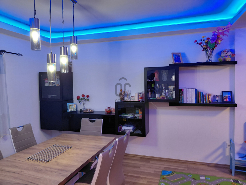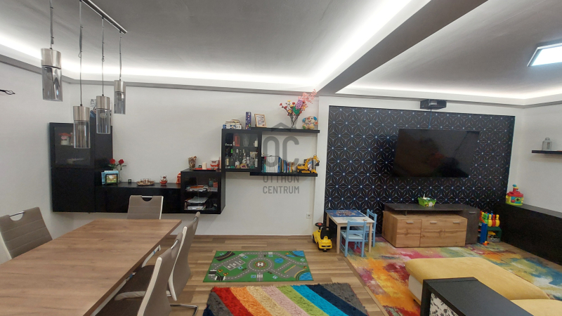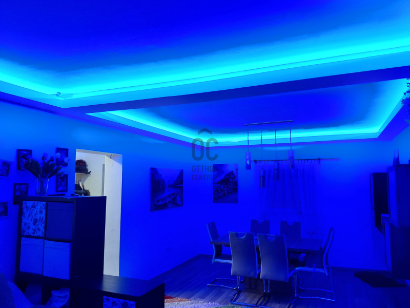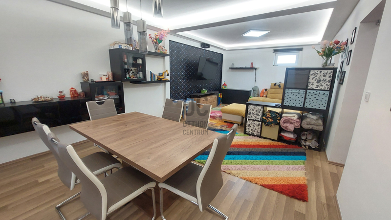 A tágas nappali a LED hangulatvilágítással garantáltan kellemes estéket biztosít, ahol barátokkal és családdal töltheti az időt. A nappali eredetileg két külön álló szoba volt, így azt visszaalakítva 5 szobássá alakítható a ház. A házhoz tartozik egy 7 négyzetméteres fedett terasz.