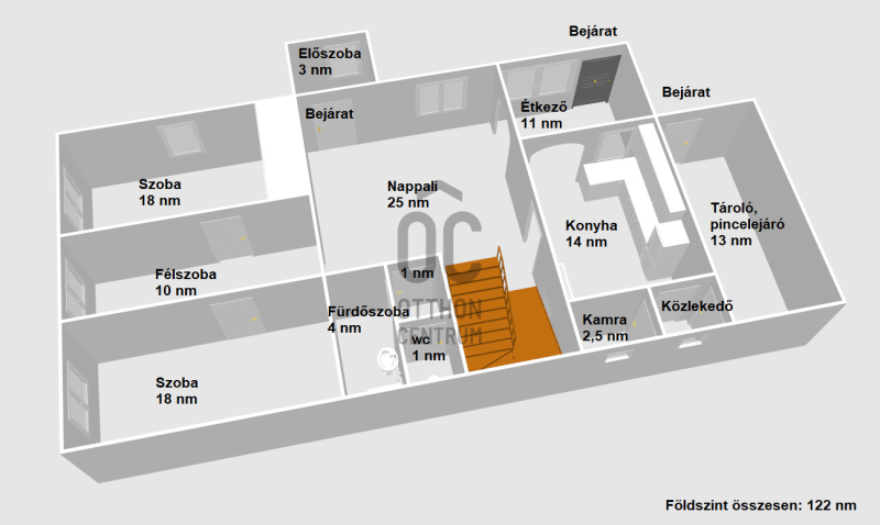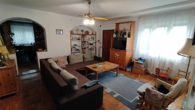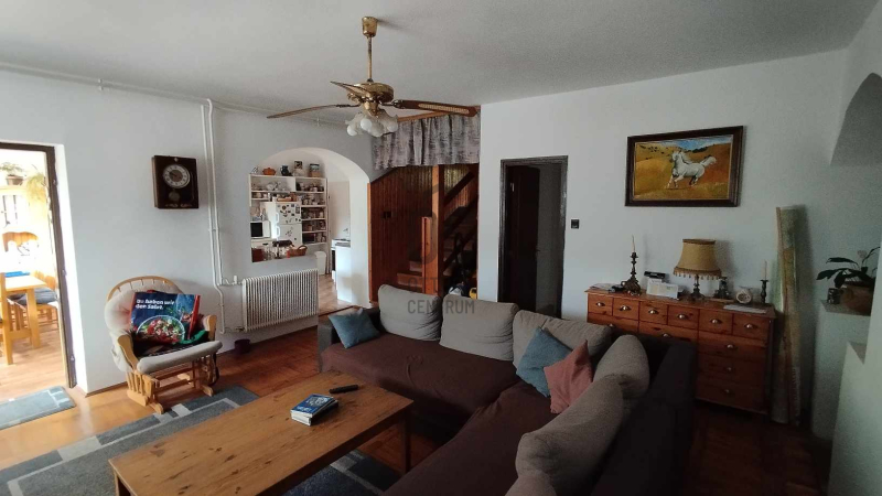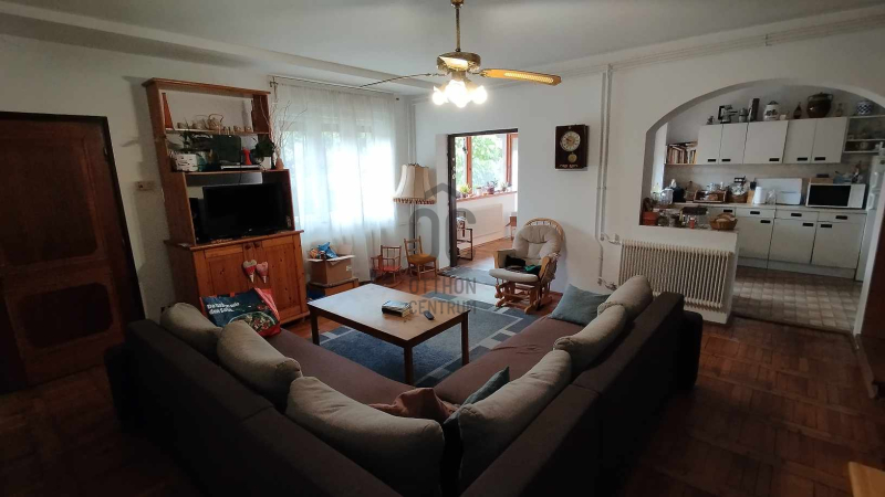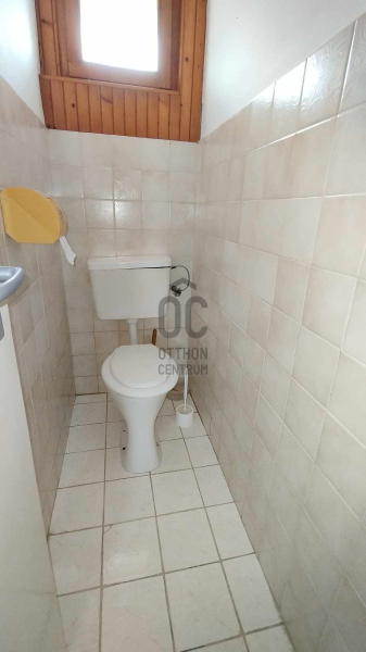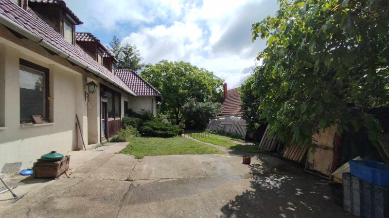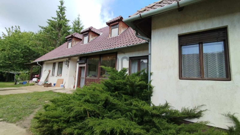 A főépület jó elosztású: a földszinten nagyméretű, tágas nappali, 2 szobán és 1 félszobán túl nagyméretű konyha, külön étkező, kamra, fürdőszoba és wc található.