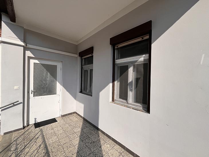 A nyílászárók műanyag thermo üvegesek az első házrészen.