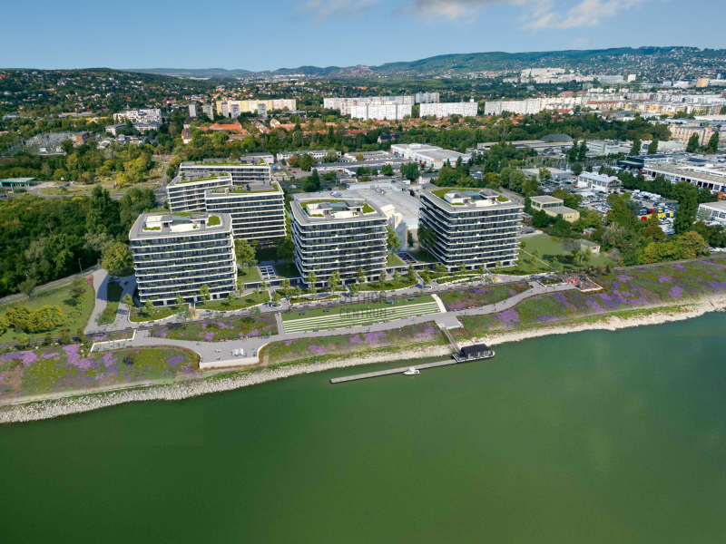 A környék Buda egyik leggyorsabban fejlődő területe, modern infrastruktúrával, vízparti sétányokkal és zöld parkokkal – a város új, természetközeli központja születik itt.