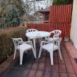 A barátságos, tujákkal körülvett kert biztosítja a nyugodt kikapcsolódást, pihenést.