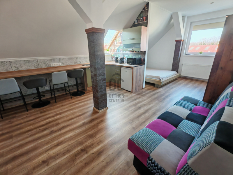 30 m²-es, amerikai konyhás nappali + hálószobás lakás, teljes körűen felújított épület első emeletén.