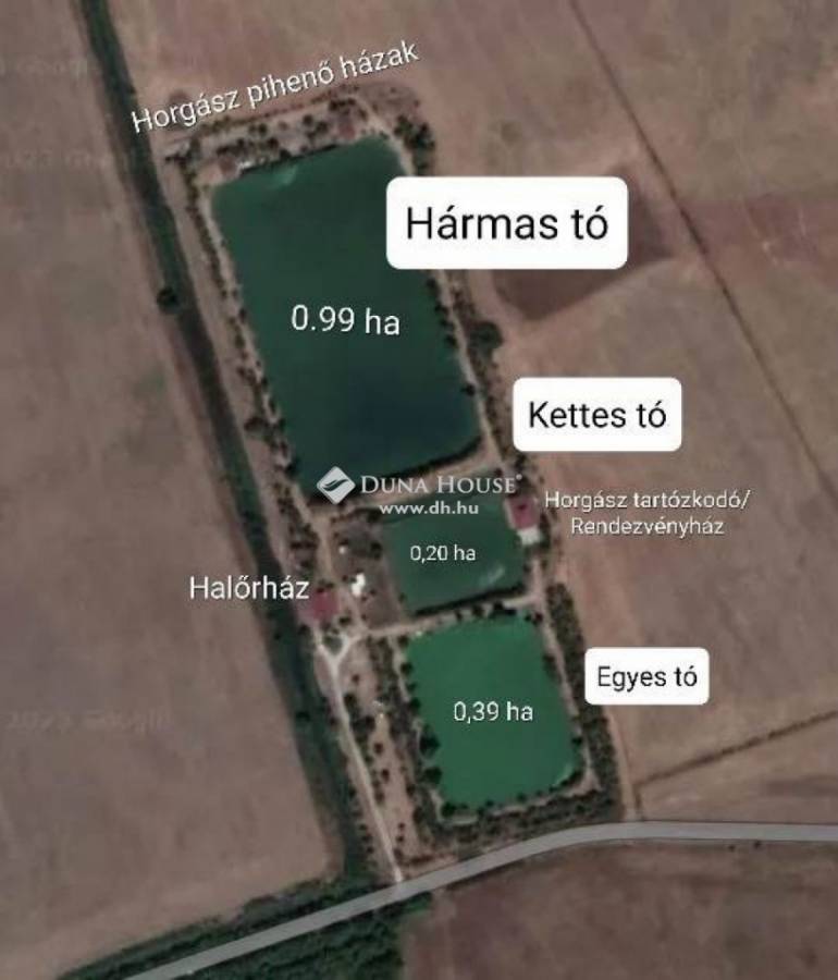 Hódmezővásárhelyhez közel, Derekegyház közigazgatási területéhez tartozó, 10,3 hektáros telek, horgásztavakkal, kialakult vendégkörrel eladó!