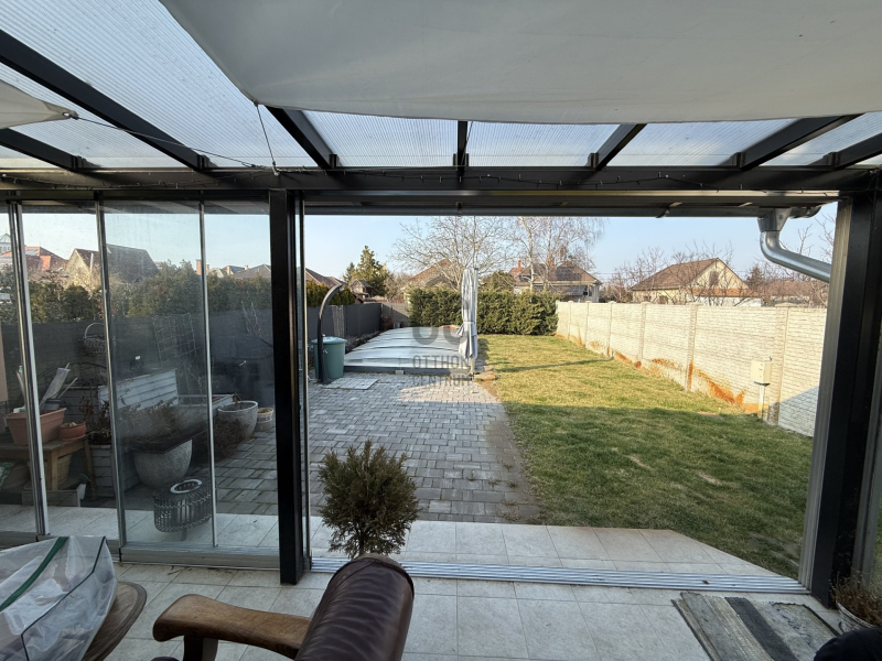 illetve biztosítja elektromos gépjármű töltési lehetőségét. A kertben egy téliesíthető medence fokozza az ott lakók kényelmét, nyári időtöltését.