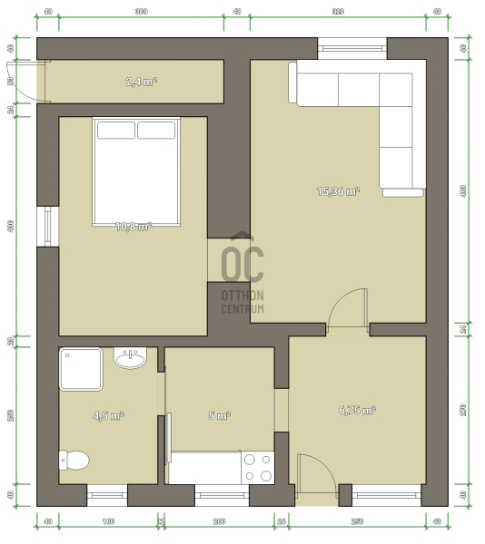 - 45nm belső hasznos alapterület,
