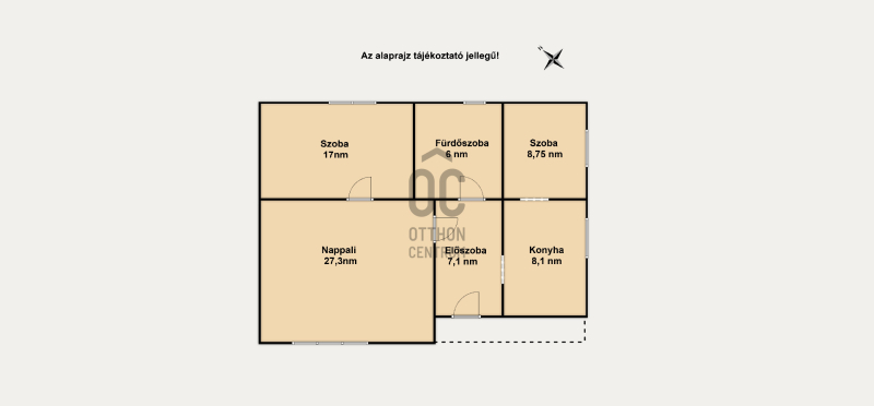 * Ház hasznos alapterülete 75 nm, ami magába foglalja a 3 szobát, előszobát, konyhát, fürdőszobát illemhelyiséggel