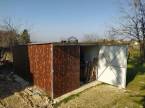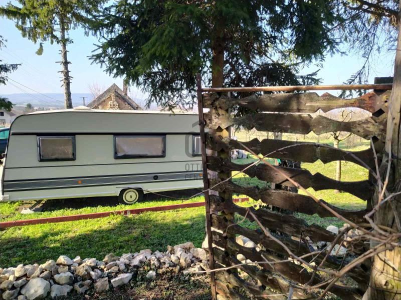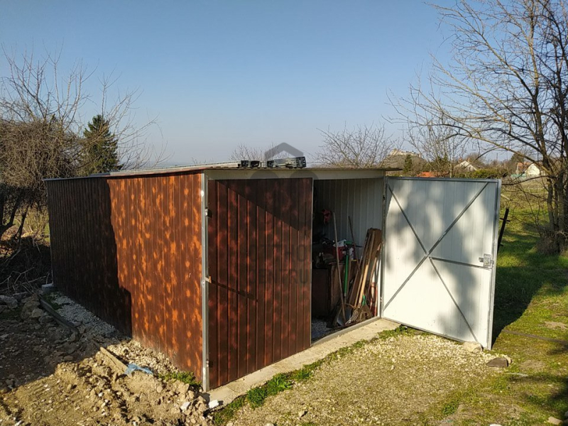 Alsó részén volt 1 gazdasági épület kb 30 nm-es ami rossz állapota miatt ez év elején lebontásra került, alap maradt, újraépíthető.Található még rajta egy 15 nm-es 2 éves lemezgarázs,és egy tavany nyáron telepített lakókocsi mely tavasztól őszig lakható,minden működik benne,nincs beázás és kapott egy nagytakarítást!A telken az áram bevezetésre került,víz megoldható.