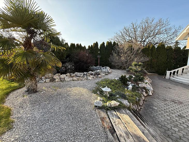 A kert gyönyörűen parkosított, ideális pihenésre és kikapcsolódásra.