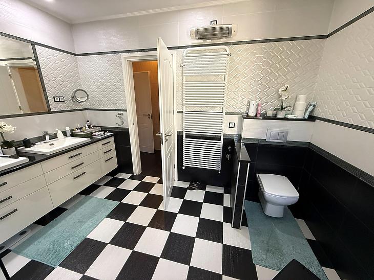 A helyiségek burkolatai igényesek: a nappali és a hálószobák parkettával, míg a többi helyiség járólappal burkolt.
