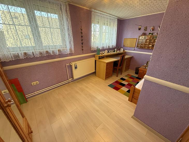 Az emeleten a szobák parkettásak, a gardrób padlószőnyeggel borított, a további helyiségek pedig járólapos kialakításúak.