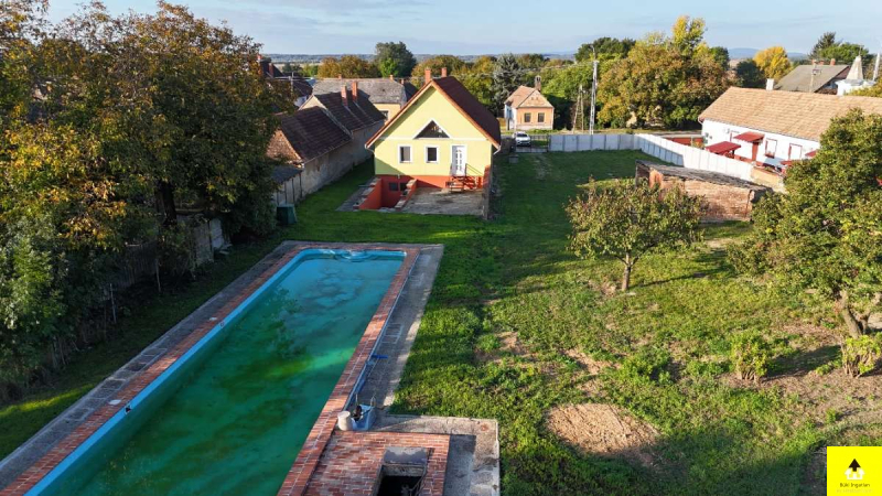 6 Km-re az Osztrák határtól? Bükfürdőtől 8 Km-re, Szakonyban kiváló állapotú családi ház úszómedencével eladó! Szakony ideális elhelyezkedésű Bük és Lutzmannsburg (AT) között félúton, mindkét termálfürdő kerékpárúton is megközelíthető, amely a ház előtt halad el. A ház 1995-ben épült, majd 2002-ben bővítve lett 66 m2-el és az alatta lévő 48 m2-es pincével, ami 3 helyiségre lett osztva. Falazata tégla, héjazata Bramac cserép. Az épület fűtését gázkazán biztosítja, de három helyiségben gyönyörű cserépkályha is beépítésre került. Minden lakóhelyiség műanyag ablakkal, a fürdőszoba és a WC pedig fa ablakkal rendelkezik. A telken egy óriási úszómedence és egy tó is helyet kapott. Az úszómedence összekapcsolható a tóval egy természetes fürdővízúttal, amelynek közepén a szivattyúház szigetként állna. A szomszédos telek is meg lett vásárolva, és alkalmas lehet egy garázs építésére. A teljes telekméret: 2987 + 800 m2, az épület alapterülete pedig 136 m2.