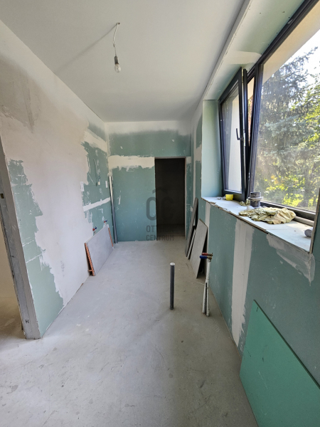 A házban a burkolatok, konyha és fürdőszoba bútorok, szaniterek és klímák az emeleten már beépítésre kerültek.