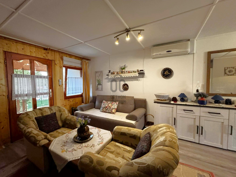 A település csendes, átjáró forgalomtól mentes utcájában, takaros nyaraló keresi új tulajdonosát.