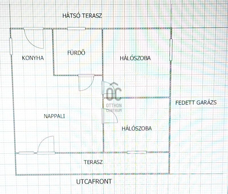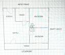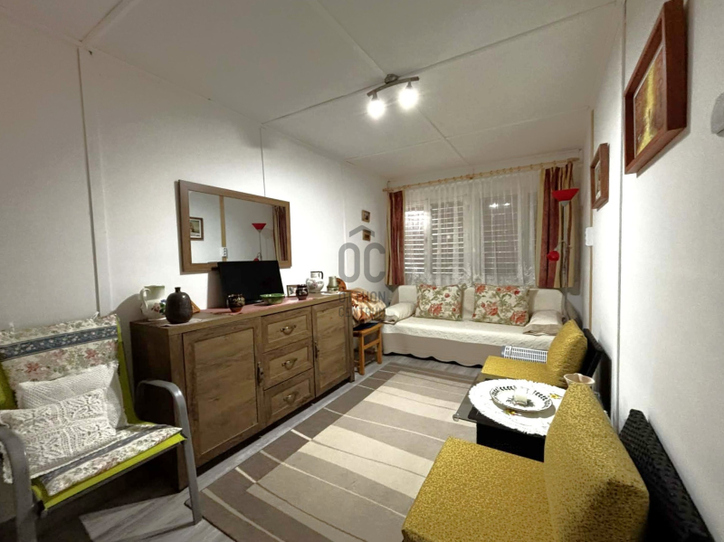 Elosztása :- 2 szoba , egy légtérben : tágas nappali, konyha-étkező , fürdőszoba, tároló, fedett első és hátsó terasz.