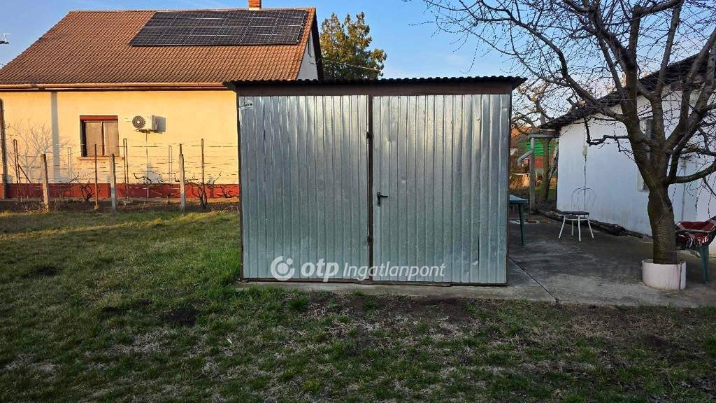 A telken 18m2 beton alapon könnyűszerkezetes garázs , és 8m2 szigetelt tároló kapott helyet.
