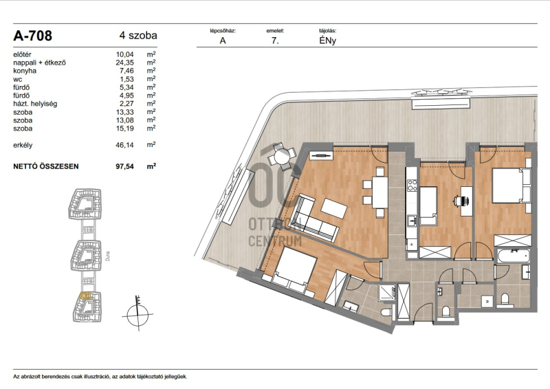 A teraszról a Duna látványa, a vízpart halk morajlása és a modern városi környezet tökéletes harmóniája adja az itt élők mindennapjainak különleges atmoszféráját.