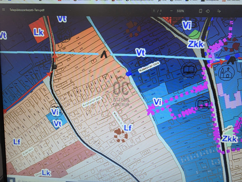 Telek besorolása Vt,Vegyes Intézményi övezet, Építhető rá oldalhatáron álló két lakásos épület, 6m magasságig., vagy elé főbb rendeltetési egységgel,kereskedelmi szolgáltató épület belső parkolással.