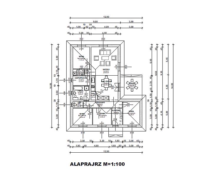 A praktikus elosztásnak köszönhetően nappali + 3 szoba, étkezős konyha kamrával, fürdőszoba, 2 külön WC, mosókonyha, közlekedő és előszoba kerül kialakításra.