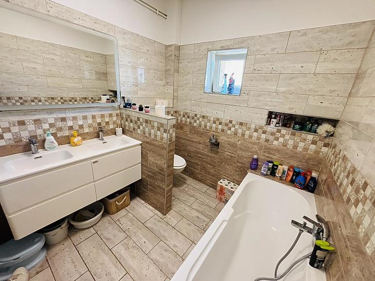 A 30 cm-es falazatot 5 cm homlokzati, valamint 20 cm födémszigetelés egészíti ki, a nyílászárók műanyagok, a villamoshálózata teljeskörű felújításon esett át.