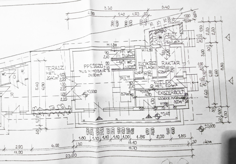 alsó szint: 1983-ban épült, tégla szerkezetű épület, lapostetővel