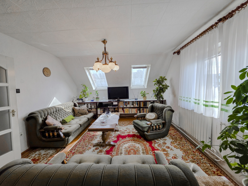 A felső szint jelenleg lakásként funkcionál, de kiválóan alkalmas irodának, rendelőnek vagy egyéb szolgáltató tevékenységre is.