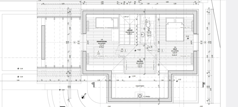 A 100 m²-es lakótér + 16 m²-es fedett terasz egy 400 m²-es telken terül el: két szoba és egy félszoba, külön fürdő és WC, duplakomfort, se felesleges sarkok, se kihasználatlan terek. A nappalihoz kapcsolódó 6 m²-es nyitott terasz nem díszlet, hanem a ház kinyílása, ahol a panoráma és a csend egyszerre ad levegőt a mindennapoknak.