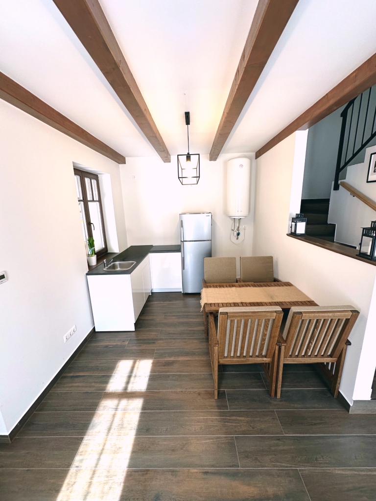 A belső tér letisztult, mégis karakteres: tömör fa nyílászárók, kandalló kialakításának lehetősége, elektromos redőny és riasztórendszer kiépített vezetékezéssel. Az önálló garázs biztosítja a kényelmes parkolást és a praktikus tárolást, így minden nap egyszerű és rendezett marad.