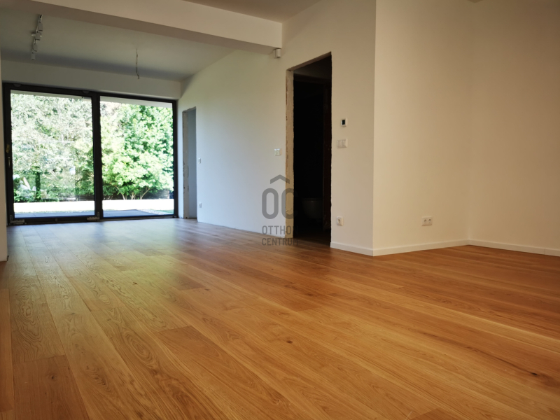 földszint, közvetlen kertkapcsolat, nettó alapterülete 92,35 m2 + 56 m2 terasz, 4 szoba, 2 fürdőszoba.
