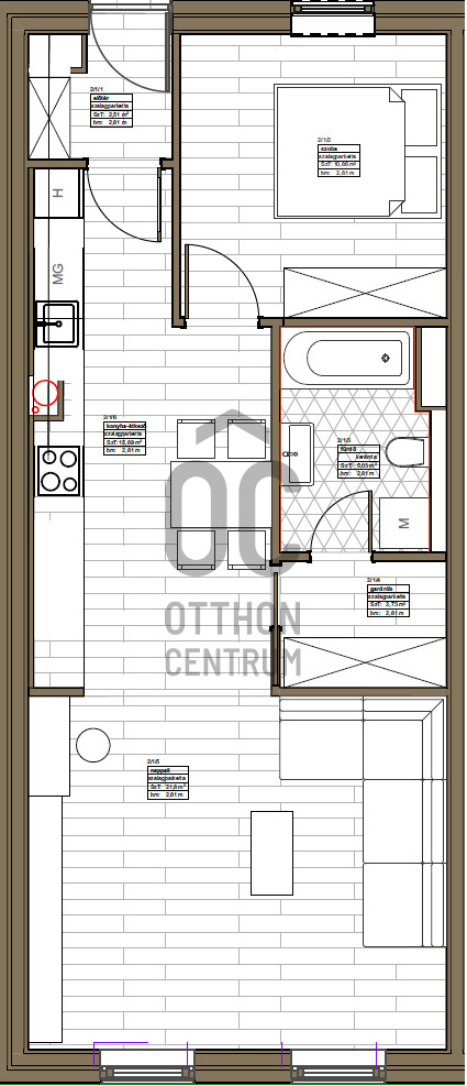 A lakás kialakítása letisztult, a felhasznált anyagok és a műszaki megoldások a kényelmes, hosszú távon is jól fenntartható használatot szolgálják.