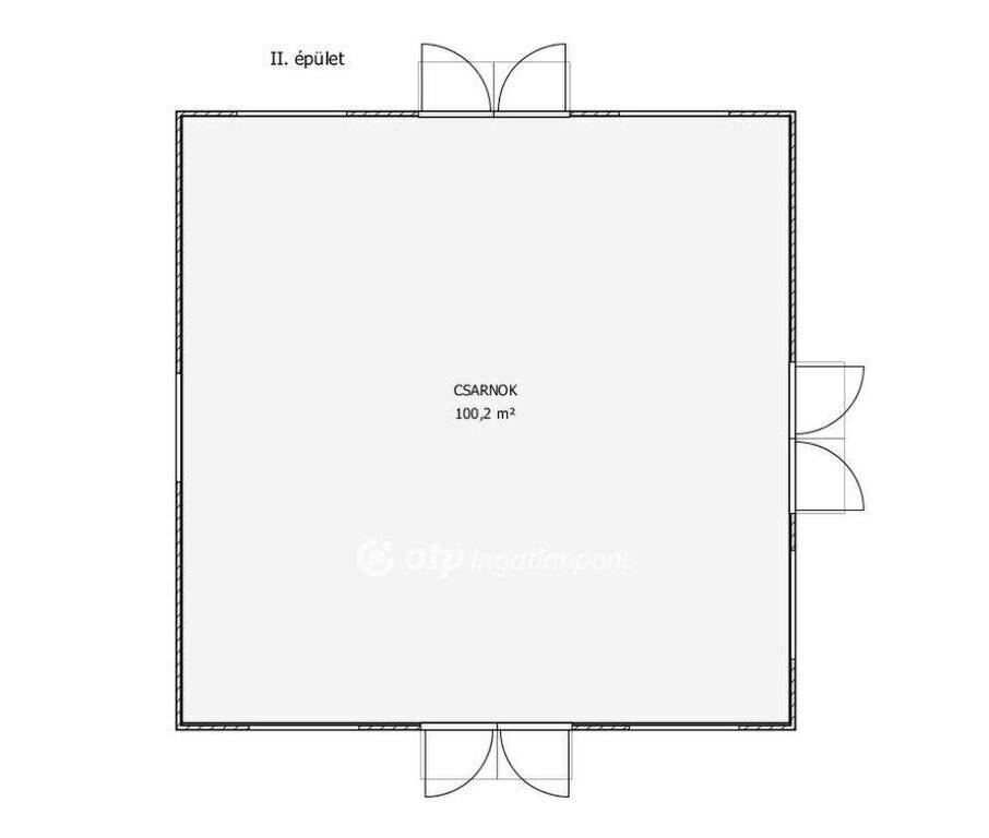 A 2.sz. épület beton elemekből áll, 100m2 alapterületű, egy légterű fűtetlen csarnok, ahová az áram be van vezetve.