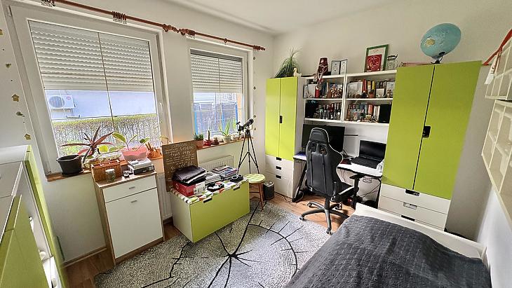 Minden ablak redőnnyel és szúnyoghálóval felszerelt.