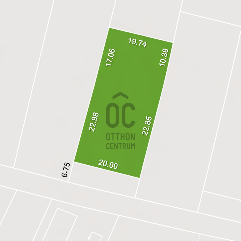 A telek 20 méteres utcafronttal rendelkezik, kedvező adottságokkal.