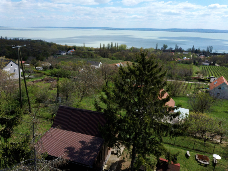 A telken helyet kapott faház a \\\'80-as évek közepén került megépítésre, hasznos alapterülete 35 négyzetméter, melyhez 19 nm-es balatoni panorámás terasz kapcsolódik.