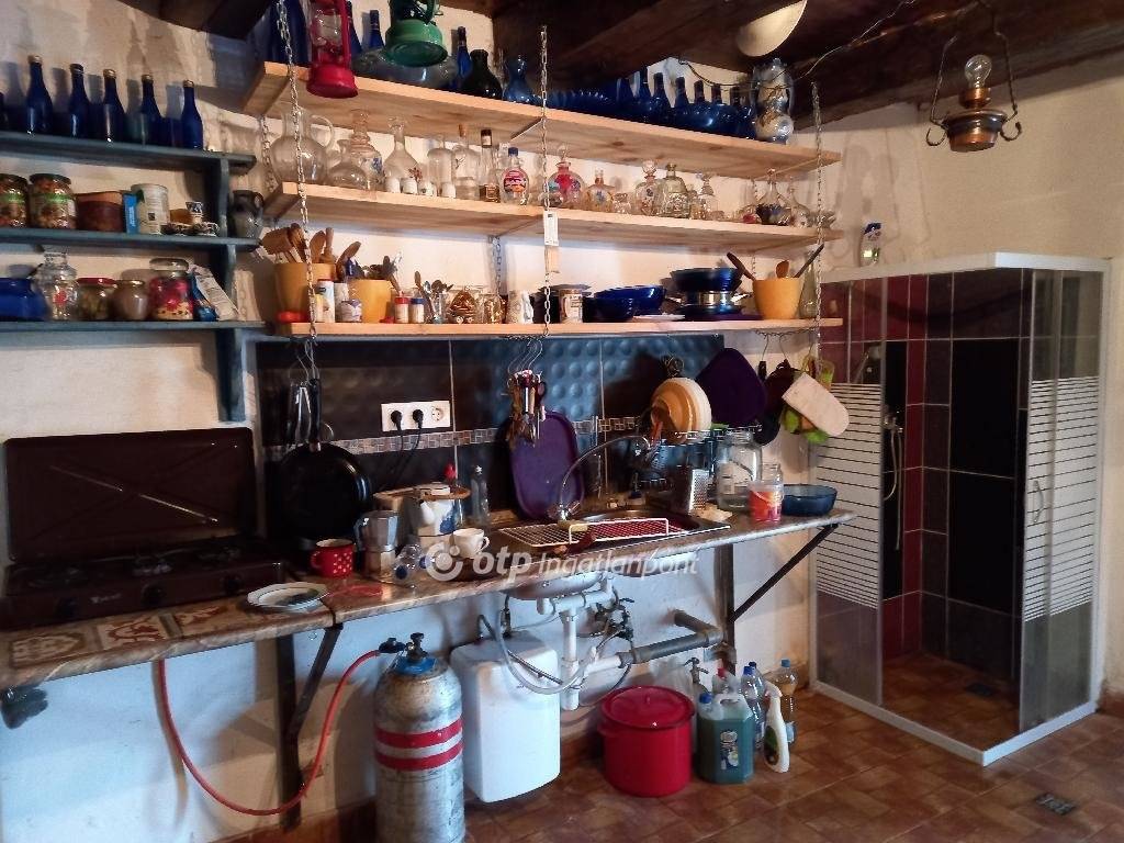 A földszint fagerendás mennyezetű, a tágas térben konyhapult és zuhanyfülke található. Továbbá itt helyezkedik el a hangulatos téglakályha, melyben sütő is van és a fűtés mellett főzésre is alkalmas.