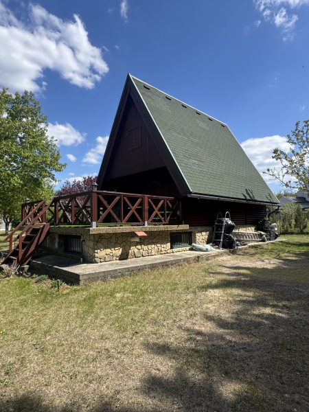 Eladó Surány egyik legszebb, legnyugodtabb részén egy minden igényt kielégítő, 65 nm-es, téliesített faház.
