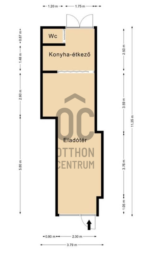 * Eladótér, konyha és wc-kézmosó kialakítva