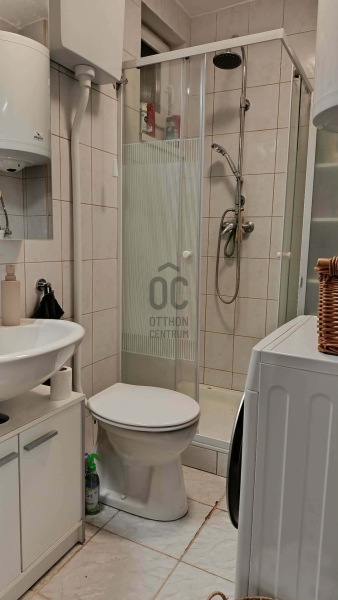 - a fürdőszoba és a wc egy helyiségben van, zuhanyfülkés,