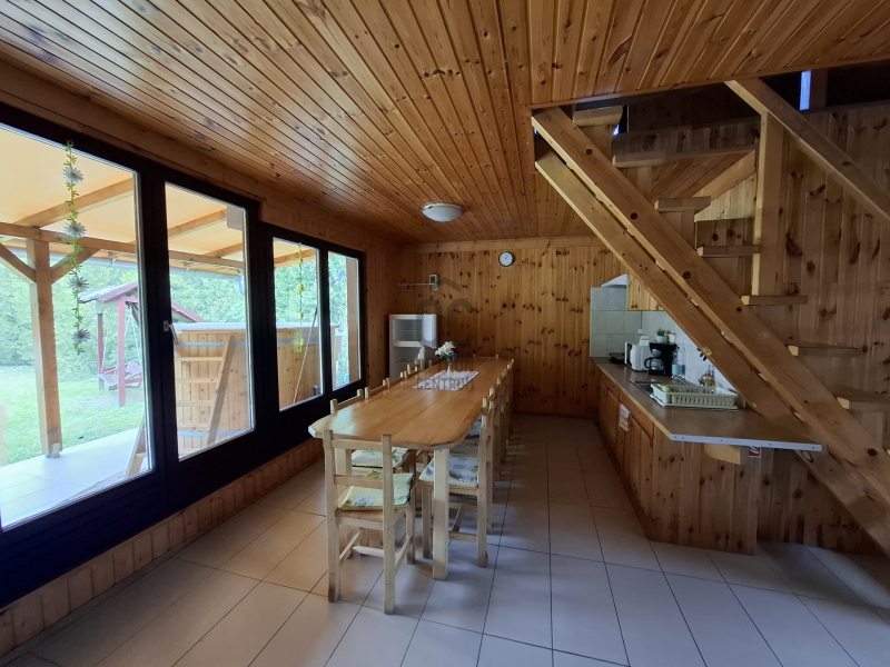 80 nm-es, könnyűszerkezetes. Az ingatlan nem kizárólag szezonális, tavasztól őszig, sőt enyhébb teleken is jól kihasználható.