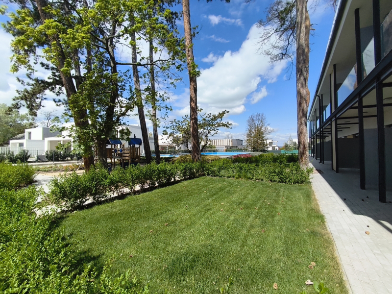 A lakás 29 lakásos, A+ energia besorolású társasházban található, a 2. emeleten, a penthouse szinten. Az épület tervezésénél a funkcionalitás mellett fő szempontok voltak az egyszerűség, az elegancia, a harmónia és a modernitás, ezek mellett a kedvező megközelítés, tájolási és panoráma adottságok kihasználása is. A lakóparkban felnőtt illetve gyermek medence is kialakításra került. Az ingatlan téglából épült, szigetelt, lapos tetős épület.
