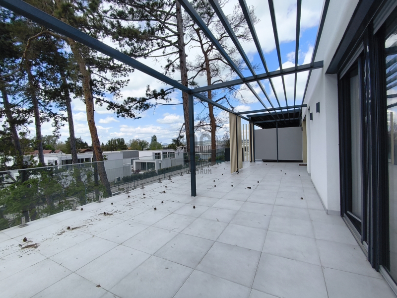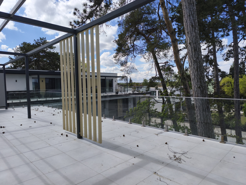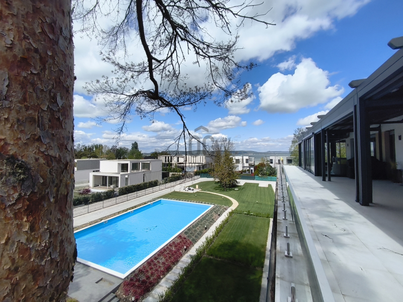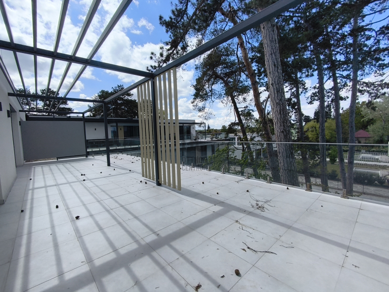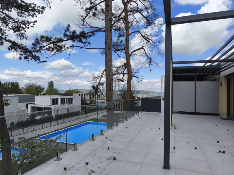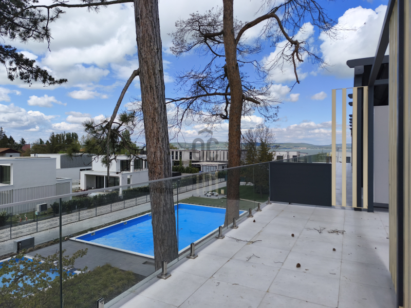 Balatonlellén, vízparti ősfás környezetben, új építésű, 78 m2-es penthouse, luxus lakás 68,18 m2-es terasszal, balatoni panorámával, komplett berendezéssel, 2 db felszíni parkolóval eladó.