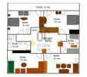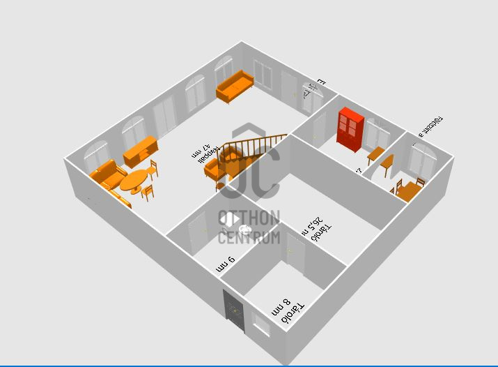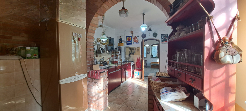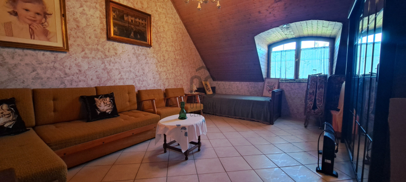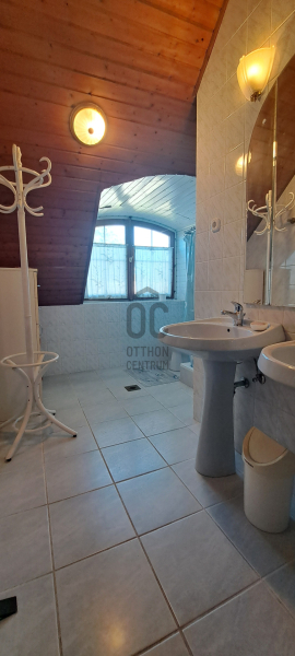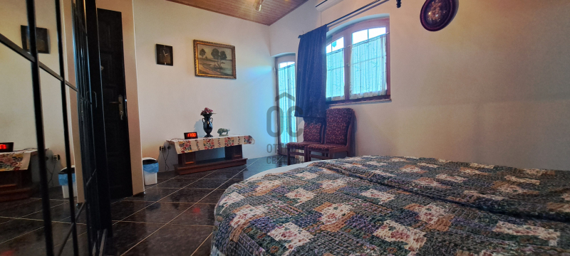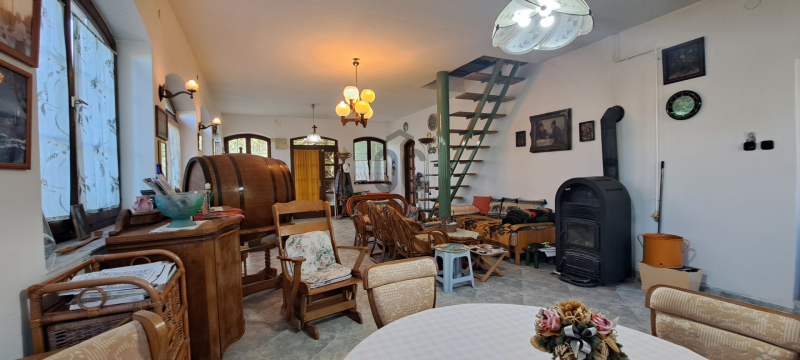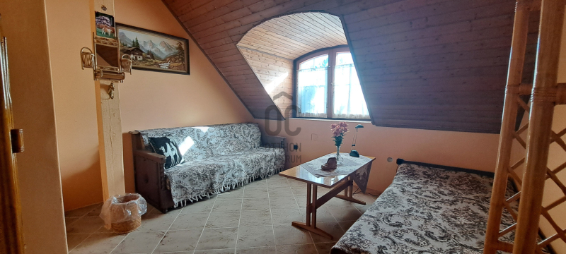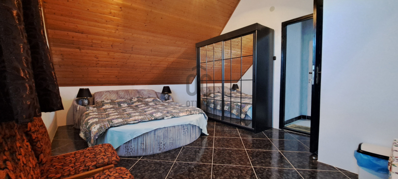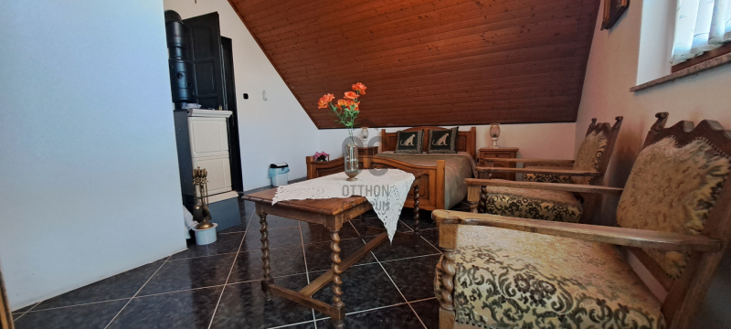 Az épület a 2000-es évek elején téglából készült. A földszinten konyha, egy nagyméretű nappali és egy fürdőszoba van. Egy külön bejáraton tudjuk megközelíteni a tároló részt, amit akár egy apartmanná is átalakíthatunk és még így is marad egy kis kerti házikó, amit tárolásra használhatunk. Az emeleti részen 5 lakószoba és egy tusolós fürdőszoba van.