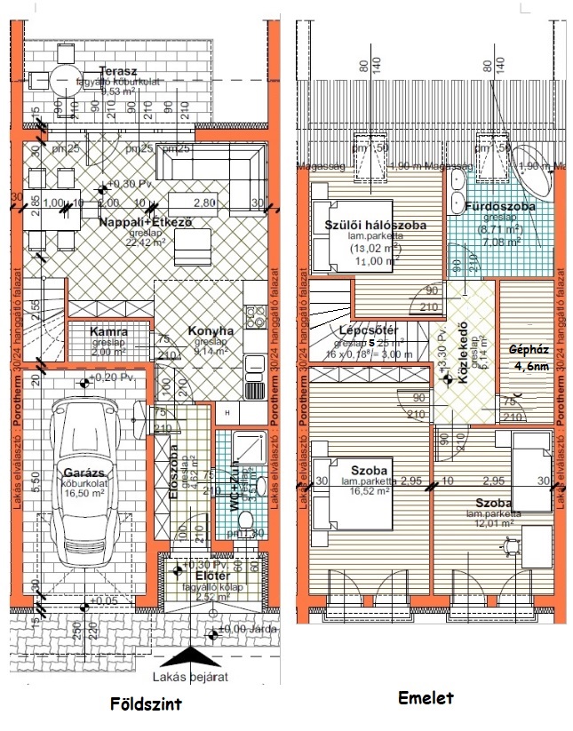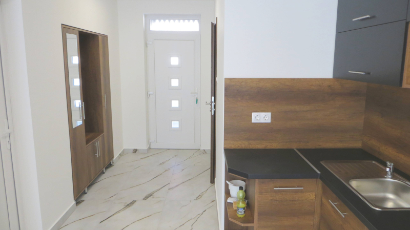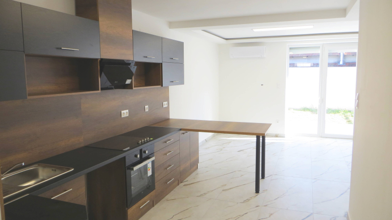 Békéscsabán a piac közelében csendes utcában eladó egy új építésű, 3+1 félszobás, 122nm-es, dupla komfortos, szélső sorházi lakás, ami tulajdoni lap szerint irodaként van nyilvántartva. Az ingatlan Porotherm 30cm-es okostéglából épült, 15cm-es homlokzati, 12cm-es lépésálló és 25cm-es üveggyapot tetőtér szigeteléssel rendelkezik. A 3 rétegű üvegezésű nyílászárók redőnnyel felszereltek, a villamos hálózat 3*16A + kedvezményes 1*20A „H” tarifa került bevezetésre, amiről működik a 10kw-os Beretta hőszivattyú - ami a padlófűtést és meleg vizet látja el - valamint a 2db Midea 5kw-os hűtő-fűtő fancoil. A szobák fűtése külön szabályozható és az egész rendszer \\\"okosítható\\\". Napelem, illetve teljes passzívház előkészítéssel rendelkezik az ingatlan. A zárt közös udvarra elektromos kapun, a fűtött garázsunkba pedig elektromos hőszigetelt garázskapun jutunk be. A garázs előtt lehetőség van még egy autóval történő parkolásra. Kb. egy 45nm-es saját kert tartozik a sorházhoz, ahol a 10nm-es terasz található.