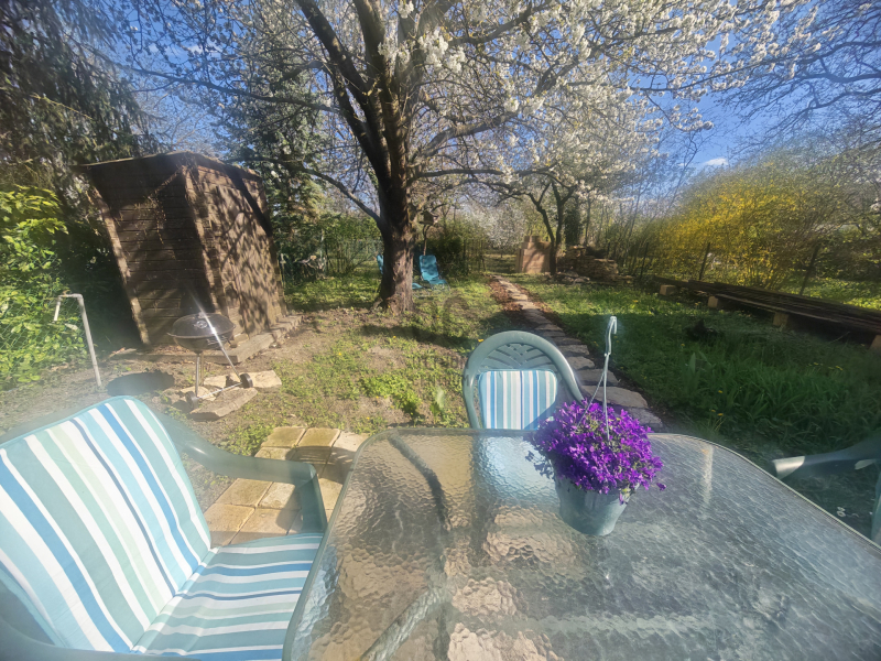 485 m²-es, gondozott telek gyümölcsfákkal és veteményessel