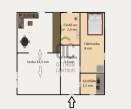 A belső tér jól kihasznált: előszoba, konyha, fürdő (zuhany + WC), hálószoba és nappali biztosít kényelmes pihenést.