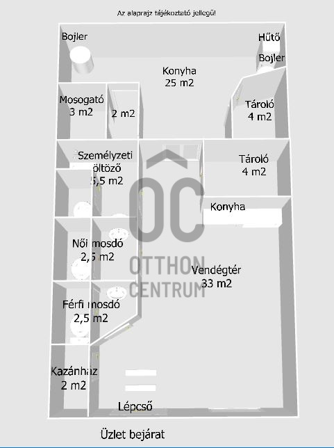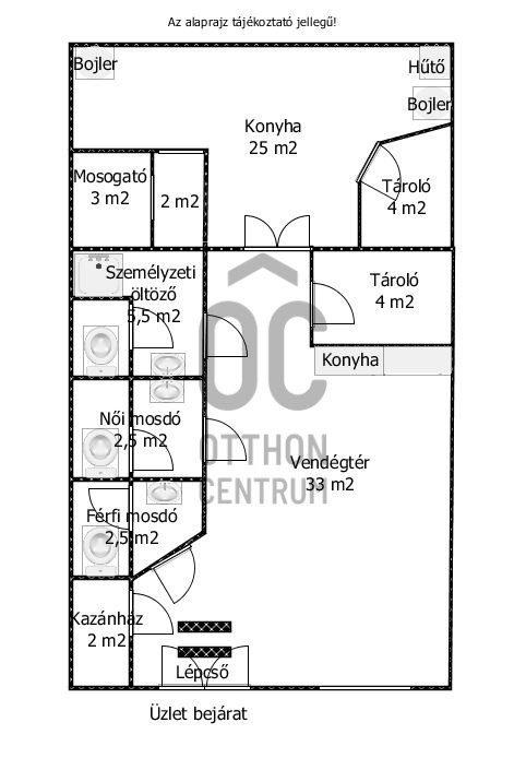 - szuterén / alagsor, ablakokkal ellátva, így természetes fényt kap a vendégtér / étkezőrész