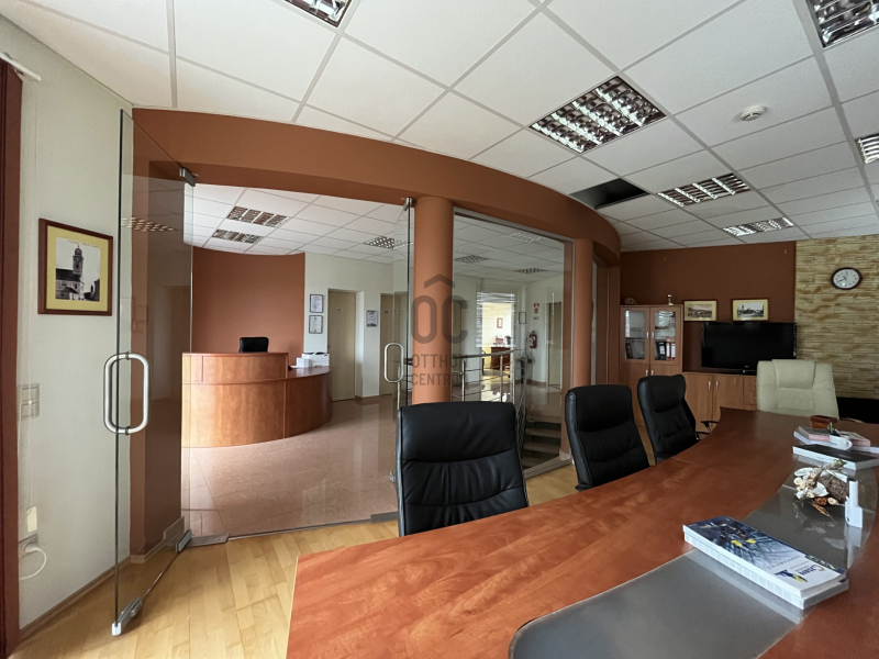 Az iroda épület földszintjén az ügyfélfogadást és ügyfélforgalmat biztosító helyiségek találhatóak, az emeleten pedig a vezetői irodák és tárgyaló kapott helyet.