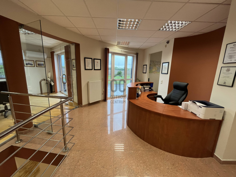 Győr Ipari parkjában, a Tati útról közvetlenül megközelíthető, nagy forgalmú útról jól látható telken elhelyezkedő irodaépület és raktár eladó.